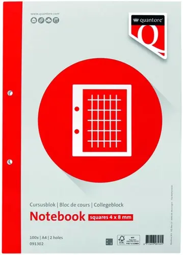 Cursusblok Quantore A4 ruit 4x8 commercieel met kantlijn