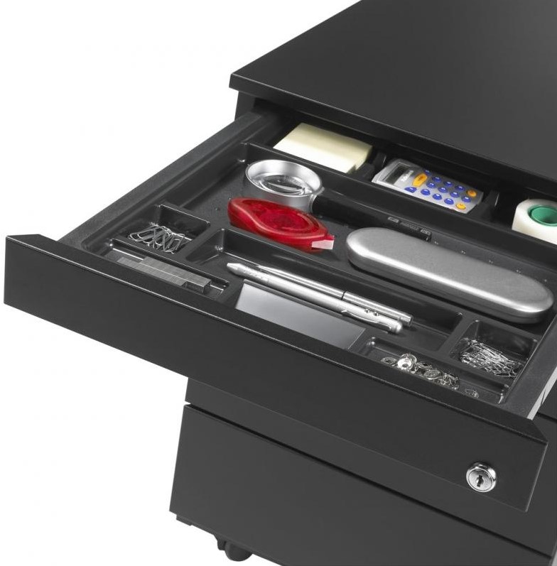 •  2 laden + pennenlade, (1x lade en 1x dossier lade), voorzien van 5e wiel en telescopische geleiding