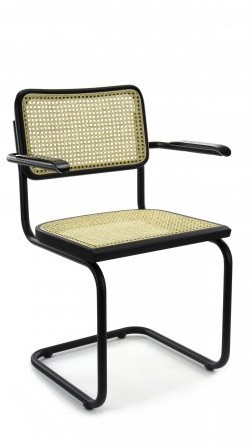 Voorzien van een rugleuning en zitting in het tijdloze webbing is de Dany een echte Bauhaus klassieker en toch supermodern in deze tijd. De stoel heeft een mat zwart sledeframe en rand van de zitting en rugleuning, en is voorzien van armleggers gemaakt van gematteerd bakeliet.