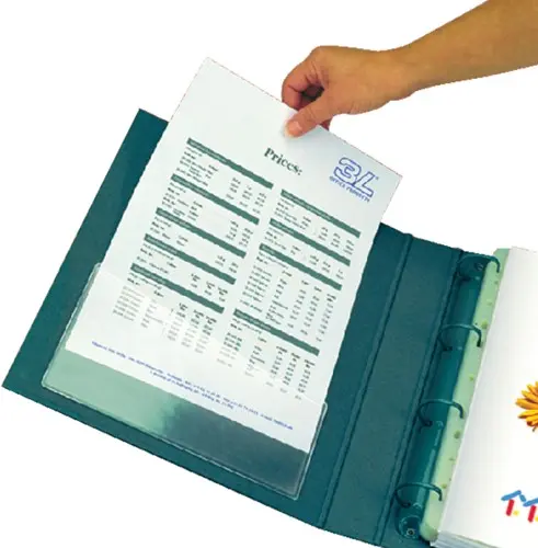 • Deze transparante zelfklevende insteekhoes Djois (155x90mm) is ideaal voor het opbergen van brochures, drukwerk en documenten. Dankzij de zelfklevende achterkant plak je de insteektas eenvoudig op bijvoorbeeld ringmappen, notitieblokken of dossiers, waardoor ze gepersonaliseerde kantoorhulpmiddelen worden die perfect zijn voor je presentatie. Dankzij de antistatische polypropyleen wordt er langdurige bescherming geboden aan je documenten. Perfect voor presentaties, archivering en professioneel gebruik. Productvoordelen;