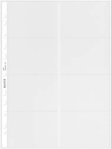 • Showtas met 8 verdelingen voor visitekaartjes. Door meerdere perforatiegaten zijn visitekaartjes handig op te bergen in ordners en ringbanden.