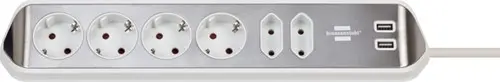 Stekkerdoos Brennenstuhl bureau Estilo 6 voudig inclusief 2 USB 2m meter wit/zilver