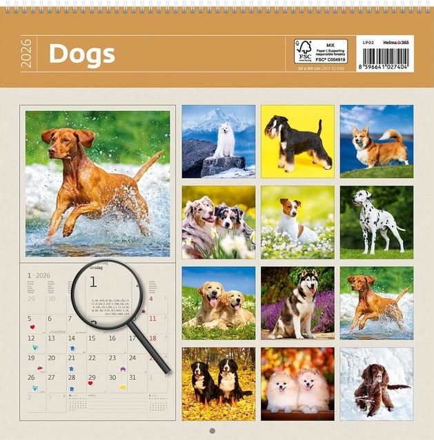 • Duik in de wereld van schattige viervoeters met onze Helma365 Hondenkalender. Elke maand pronkt met een inspirerende foto van een hond, waardoor je hart smelt van liefde voor deze trouwe metgezellen. Vanaf januari tot december, laat deze kalender je genieten van de schoonheid en charme van diverse hondenrassen. Elke hond heeft zijn eigen unieke persoonlijkheid die schittert wanneer ze worden gefotografeerd. Geen twee honden zijn hetzelfde, en elk heeft zijn eigen verhaal. De kalender legt hun verschillende expressies vast, van speels tot ernstig, waardoor elk beeld een authentieke weergave is van hun karakter. Ontworpen met een stevige spiraalbinding en robuust karton, hangt deze kalender recht aan je muur, zonder het risico op scheuren zoals bij andere 30 x 30 kalenders. Elk dagvak biedt voldoende ruimte om notities te maken, terwijl speciaal ontworpen stickers helpen bij het markeren van belangrijke gebeurtenissen. Milieubewust en verantwoordelijk gedrukt op PFC-gecertificeerd papier, belooft deze kalender kwaliteit en duurzaamheid. Met een afmeting van 30 x 30 cm past hij perfect in elke ruimte, van keuken tot kantoor. Dompel jezelf onder in de liefde voor honden en breng het hele jaar door met onze Helma365 Hondenkalender. Mis deze kans niet om elke dag te genieten van de prachtige foto's van deze loyale metgezellen. Belangrijkste kenmerken: