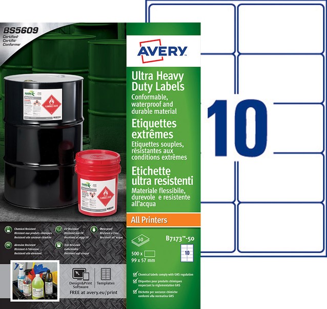 Etiket Avery B7173-50 99x57mm polyethyleen wit 500 stuks
