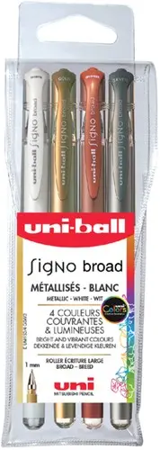 Rollerpen Uni-ball Signo breed metallic assorti etui à 4 stuks