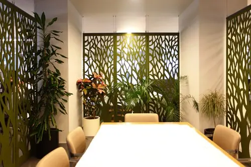 De hangende panelen zijn licht van gewicht en makkelijk te installeren. Door de vele open designs bieden de panelen een afscheiding met een transparant karakter.