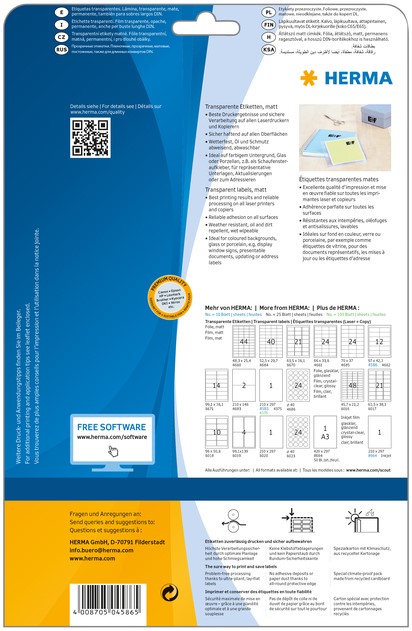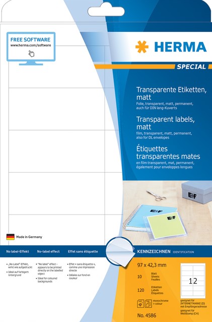 Etiket HERMA 4586 97x42.3mm weerbestendig transparant mat 120 stuks
