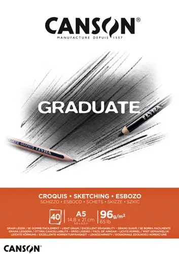 Schetspapier Canson Graduate Sketch 40vel 96gr A5 natuurlijk wit