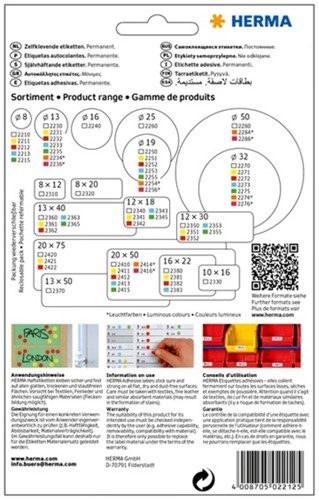 • Multipurpose-etiketten permanent hechtend om met de hand te beschrijven.