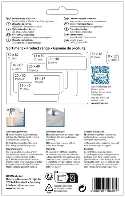 Etiket HERMA 10605 13x40mm verwijderbaar wit 672 stuks