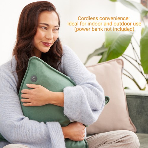 • Dankzij het draadloze gebruik met een powerbank ben je niet afhankelijk van stopcontacten. Het HC 250 verwarmingskussen heeft een ingebouwde binnenzak en een geïntegreerde USB-A-aansluiting voor de powerbank, waardoor flexibel gebruik mogelijk is. Het verwarmingskussen wordt zonder powerbank geleverd omdat het compatibel is met elke in de handel verkrijgbare powerbank - als alternatief is een medisana powerbank apart verkrijgbaar.
