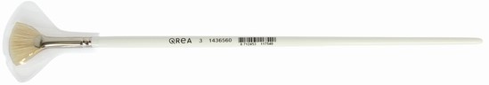 • Waaierpenseel Qrea varkenshaar nr. 3 – Ø 35mm De waaiervormige penseel van Qrea is een effectief instrument voor kunstenaars die werken met olie- of acrylverf. Dankzij de natuurlijke varkensharen biedt dit penseel een onzichtbare verfopname en uitstekende spreiding, ideaal voor het creëren van fijne structuren en zachte overgangen. De lange, witte houten steel ligt comfortabel in de hand en zorgt voor nauwkeurige controle tijdens het schilderen. Door de hoge elasticiteit en vormvastheid is de penseel kwaliteit, zelfs bij intensief gebruik. Kenmerken: