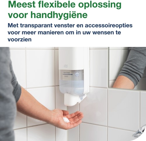 • Voldoe aan meerdere hygiënewensen met één systeem: ruime keuze uit zeep- en handdesinfectievullingen in schuim-, vloeibare of gelvorm die aansluiten bij de wensen van uw bedrijf en bezoekers.