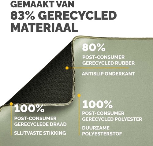 De ingebouwde Microban®-bescherming helpt de groei van bacteriën te voorkomen en werkt 24/7 voor een extra bescherming van het product. Gemaakt van 83% gerecycled materiaal. De antislipbasis houdt de muismat de hele dag op zijn plaats. Duurzame platte stiksels voorkomen rafelen. Gemaakt om lang mee te gaan, met 5 jaar garantie.