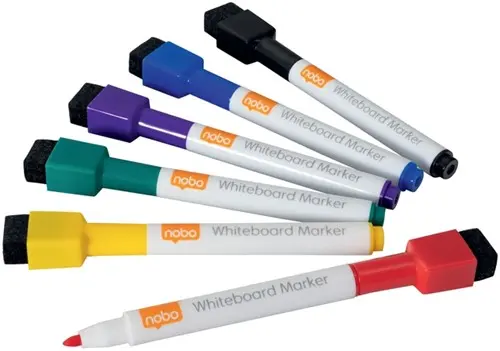 • Deze niet-permanente whiteboardmarkers van Nobo bieden een uitstekende zichtbaarheid op niet-poreuze oppervlakken en hebben een geïntegreerde wisser in de magnetische dop. Met niet-giftige, geurarme inkt voldoen ze aan al je behoeften; ideaal voor gebruik thuis & in je thuiskantoor.