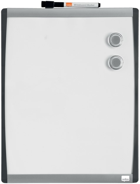 • Dit kleine whiteboard is de perfecte oplossing voor het noteren van ideeën, geheugensteuntjes of lijstjes. Met zijn stijlvolle zilver en zwart gebogen frame past dit memobord naadloos in elk thuiskantoor of thuisomgeving. Het magnetische whiteboard kan aan de muur worden bevestigd met zelfklevende pads en magneten voor metalen oppervlakken zoals koelkasten, en kan zowel staand als liggend worden gemonteerd.