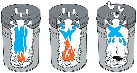 • De vlamdover is een speciale deksel met een kleinere opening, dat op de ronde metalen bak wordt geplaatst.