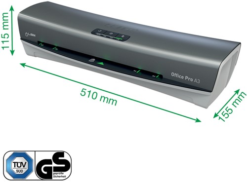 • Lamineermachine geschikt voor intensief gebruik op kantoor.