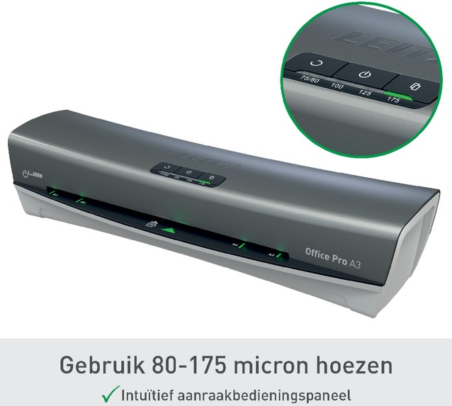 • Voor lamineerhoezen van 80 tot 175 micron.