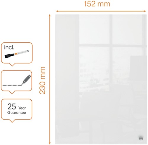• Deze mini notitieborden van glas zijn een nuttige aanvulling op elke werkruimte thuis of op kantoor. Met hun droog uitwisbare glazen oppervlak en stijlvolle randloze ontwerp, zijn deze mini whiteboards ideaal voor op het bureau en als hulpmiddel voor het maken van notities; simpelweg schrijven, wissen en opnieuw beginnen.