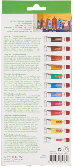 • Mooie set met 12 kleuren in 12 ml tubes Talens Art Creation gouache.