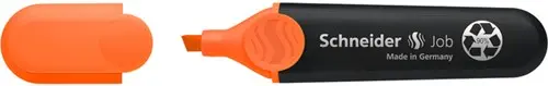 Markeerstift met twee lijndiktes in één punt, 1+5 mm. Markeringskleur: oranje. De markeerstift Job is de eerste markeerstift die voor meer dan 90% uit gerecycled materiaal bestaat en is bekroond met het wereldberoemde milieukeurmerk 'Blauer Engel'. De houder, het interne reservoir en de punt zijn gemaakt van gerecycled kunststof. De inkt is biologisch afbreekbaar. De universele inkt voor normaal, kopieer- en faxpapier heeft een maximale helderheid en is goed lichtbestendig. Daarom is de Job markeerstift aanbevolen voor gebruik op school, tijdens studies of op kantoor en is hij met zijn wigvormige punt ook perfect geschikt voor creatief werk in een bullet journal of voor kalligrafie bij handlettering. De markeerstift kan worden bijgevuld met het Maxx 660 navulstation. Met zijn grote inktvoorraad markeert de Job meer dan 15.000 woorden.