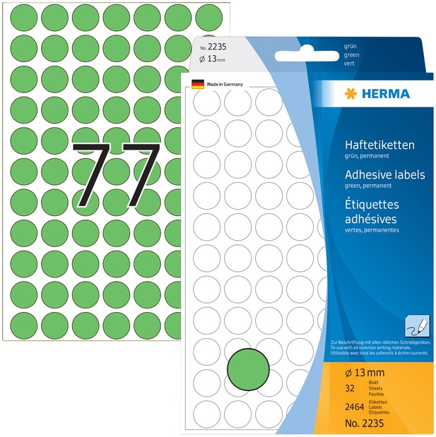 Etiket HERMA 2235 rond 13mm groen 2464 stuks