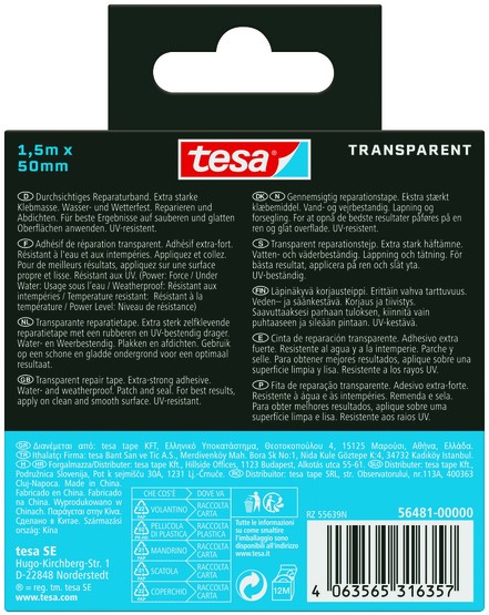 Reparatietape tesa Ultra Power Onderwater transparant 50mmx1,5m