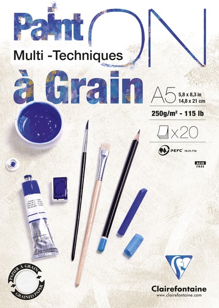 Blok Paint On Gekorreld 20 blad 250g A5 (14,8x21cm) Eén zijde met een nadrukkelijke korrel en de andere zijde zonder korrel. Ideaal voor tekenen of schilderen. Een multitechniek met korrel, goed voor droge techniek en natte techniek zoals viltstift, Chinese inkt, plakkaatverf of acryl. Goed bestand tegen het krassen en verdraagt verschillende lagen zodat corrigeren mogelijk is (uitvegen van een geschilderde lijn) 0