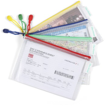 • Versterkte opbergtassen met ritssluiting verkrijgbaar in 4 maten en 4 kleuren voor een organisatie in kleurenthema. Perfect om uw documenten of kleine voorwerpen veilig te beschermen en mee te nemen. Een stoer en betrouwbaar accessoire voor op kantoor, in de fabriek, thuis, op school of op reis. Productbeschrijving: