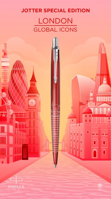 In navolging van de recente tournee langs wereldberoemde steden, gaat de Jotter Special Edition ‘Global Icons’-collectie naar vier nieuwe opwindende bestemmingen in de wereld. Majestueuze schoonheid en een onmiskenbare skyline vormen de inspiratie voor de Jotter Special Edition London. De historische silhouetten van de typische bezienswaardigheden en de kenmerkende ramen met vierkante patronen van de iconische rode telefooncel geven de stijl en tijdloze charme van deze prachtige stad weer. In een prachtig staaltje van vakmanschap van Parker is het unieke ontwerp vakkundig in de huls van dit fraaie schrijfinstrument gelaserd. De roodgelakte afwerking, de soepele schrijfervaring en de kenmerkende klik van de Jotter maken deze pen helemaal af. Voor elke ontdekkingsreiziger die een reis begint met luxe schrijfwaren, zal de Jotter Special Edition London ervoor zorgen dat elke dag aanvoelt als een episch avontuur.