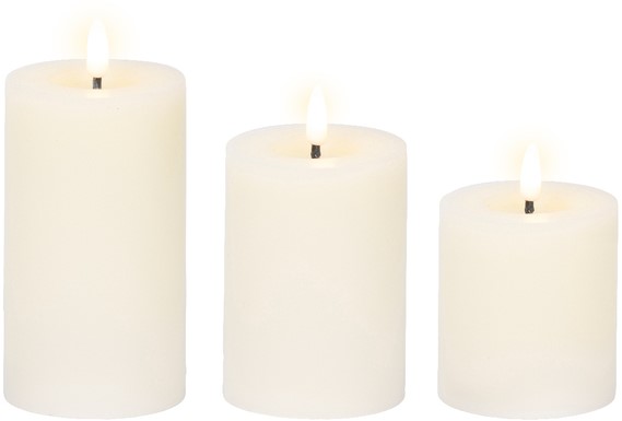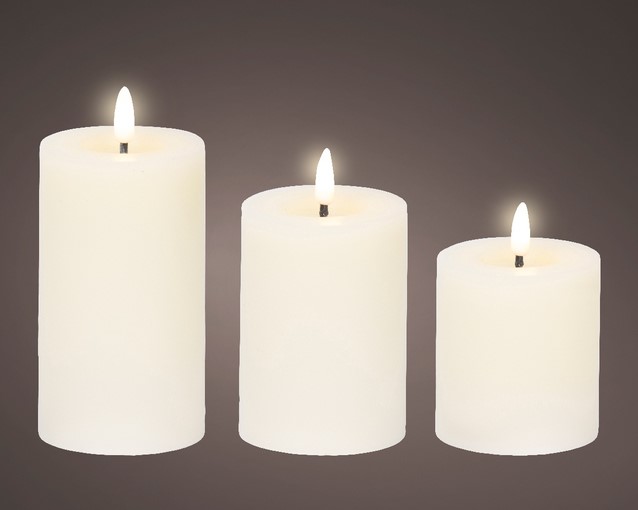 • Set van 3 kaarsen met een diameter van 7cm en een hoogte van 11.2, 15 en 19 m.