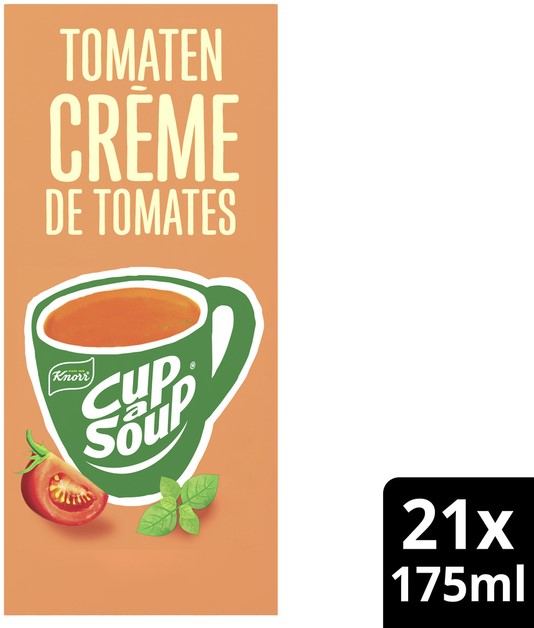 Knorr Cup-a-Soup Tomaten Crème.*Bevat 21 zakjes voor 21 heerlijke mokken soep.*62 calorieën per mok.*Zonder toegevoegde smaakversterkers, kunstmatige kleurstoffen en conserveermiddelen.*Geschikt voor vegetariërs.*Een heerlijk tussendoortje.