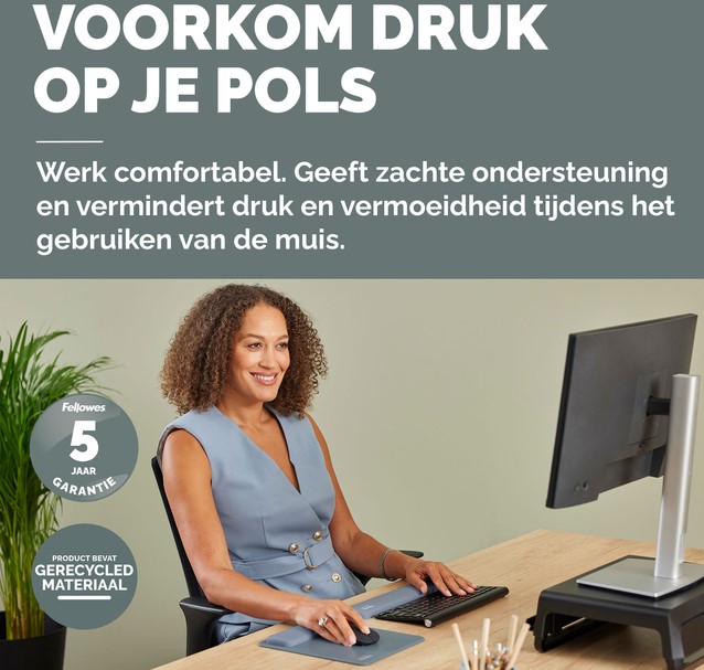 De HEX Cushion Technology™, waarvoor patent is aangevraagd, zorgt voor gelijkmatige ondersteuning en comfort tijdens het typen. De zachte, stofwerende polssteun heeft een mooie afwerking en zorgt voor een soepele typervaring. De ingebouwde Microban®-bescherming helpt bacteriën tegen te gaan en werkt 24/7 voor extra bescherming van het product.Gemaakt voor compacte (TKL) toetsenborden. 100% recyclebaar via het terugnameprogramma van Fellowes. Gemaakt om lang mee te gaan met 5 jaar beperkte garantie. Getest door FIRA International Ltd om te voldoen aan de ergonomische eisen van de Europese gezondheids- en veiligheidswetgeving: EN ISO 9241-5.