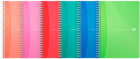 • Een spiraalblok met flexibele, waterafstotende kunststof kaft in vrolijke kleuren.