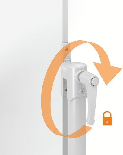 • Dit mobiele whiteboard op wielen is eenvoudig te verplaatsen tussen locaties en heeft vergrendelbare zwenkwielen voor extra stabiliteit.