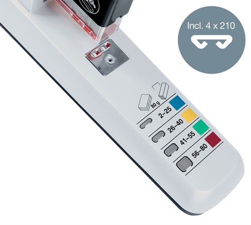 • Nietcassettesysteem voor het nieten van 2-80 vellen met één nietmachine.