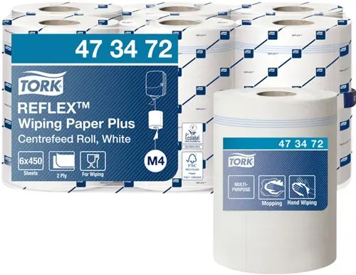 Poetspapier Tork M4 Reflex Plus Advanced 2-laags 450 vel wit 473472
