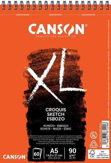 Schetspapier Canson XL Sketch 60vel 90gr A5 ivoorwit