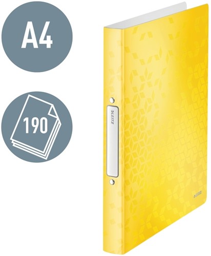 Ringband Leitz WOW A4 2-rings O-mechaniek 25mm PP geel