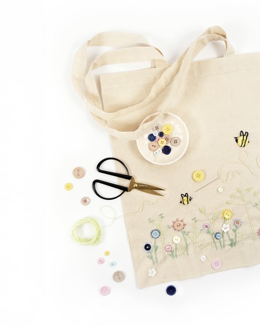 • Set met 100 gram gekleurde knopen in verschillende formaten.