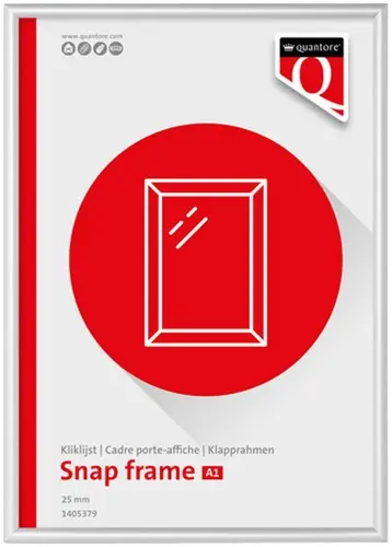 • Breng jouw posters en presentaties naar een hoger niveau met de Quantore Premium kliklijst in A1-formaat. Dit zilverkleurige frame van hoogwaardig aluminium combineert stijl en duurzaamheid, ideaal voor professioneel gebruik. De ontspiegelende, transparante folie beschermt je inhoud en zorgt ervoor dat deze vanuit elke hoek goed leesbaar blijft. Met een randbreedte van 25 mm en verborgen montagegaten biedt deze kliklijst een strakke, nette afwerking. Inclusief ophangmateriaal, waardoor het eenvoudig aan de muur te bevestigen is. Perfect voor snel en gemakkelijk wisselen van posters in kantoren, winkels of openbare ruimtes. Kenmerken: