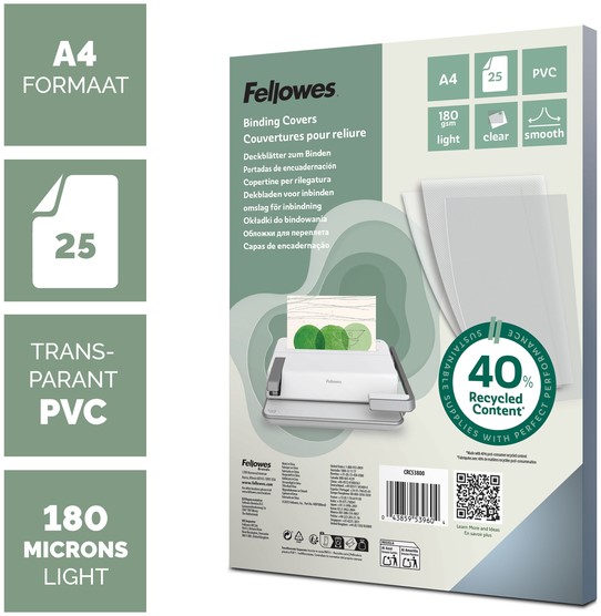 Voorblad Fellowes A4 PVC 180micron recycled 25 stuks