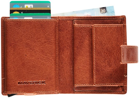 Kaarthouder Maverick Rough Gear super compact RFID leer cognac