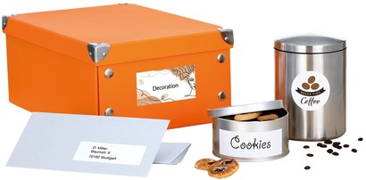 • Etiketten, speciaal voor inkjetprinters, op A4-vellen, zelfklevend, 80 vel per verpakking.