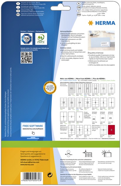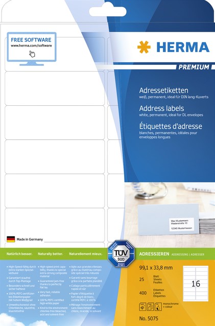 Etiket HERMA 5075 A4 99.1x33.8 mm premium wit 400 stuks