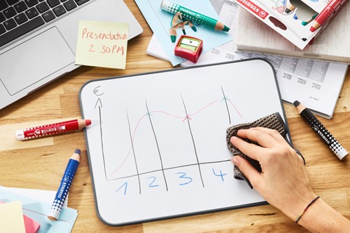 • Niks is zo vervelend dan voor de klas of je collega’s te staan naast je whiteboard of flipchart en je stift schrijft niet, omdat deze is uitgedroogd of leeggeschreven.