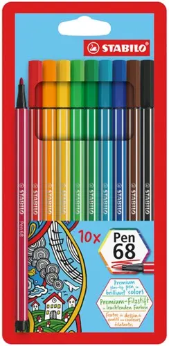 Viltstift STABILO Pen 68/10 medium assorti etui à 10 stuks