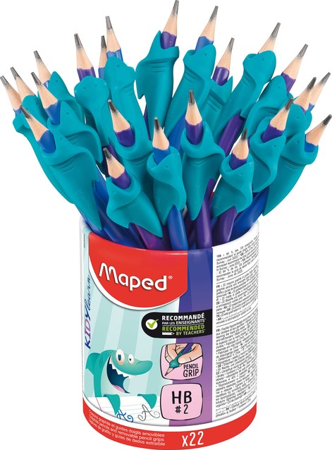 Grafietpotlood Maped Kidy Learn met gum en vingerhulp pot à 22 stuks blauw