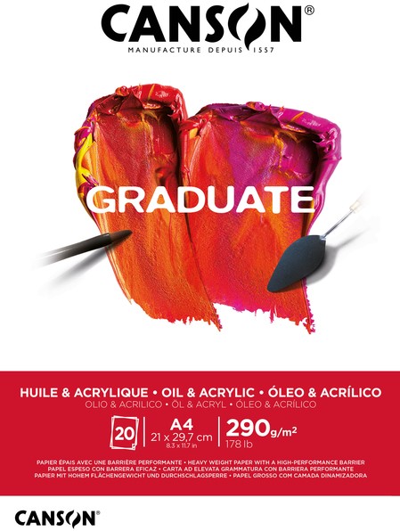 Schilderpapier Canson Graduate Oil & Acrylic 20vel 290gr A4 natuurlijk wit